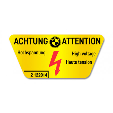 Reproduction de l'autocollant triangulaire jaune « BMW Achtung! Haute tension » - 2 122 014